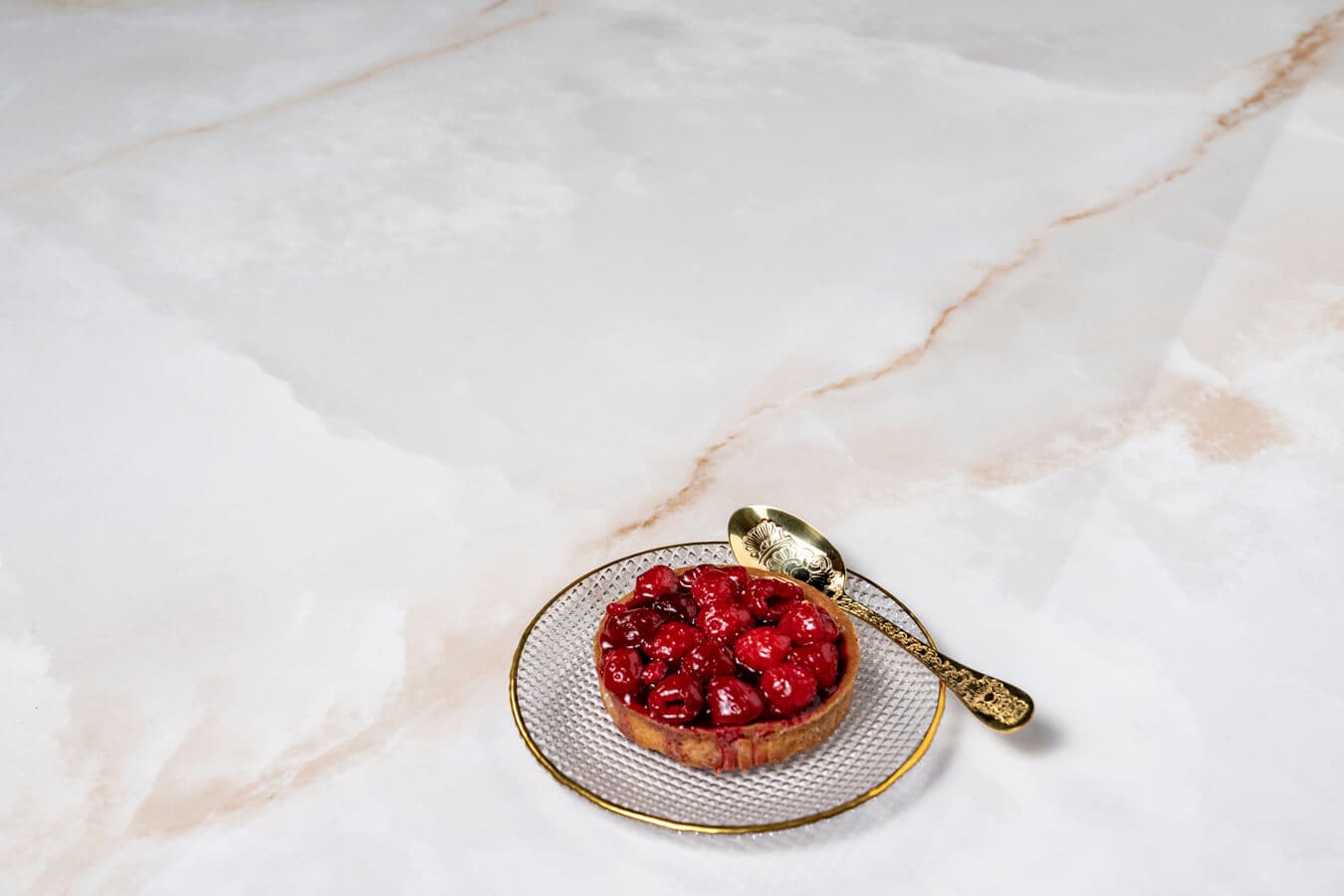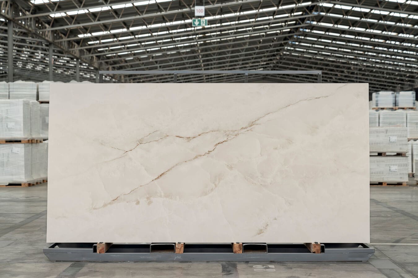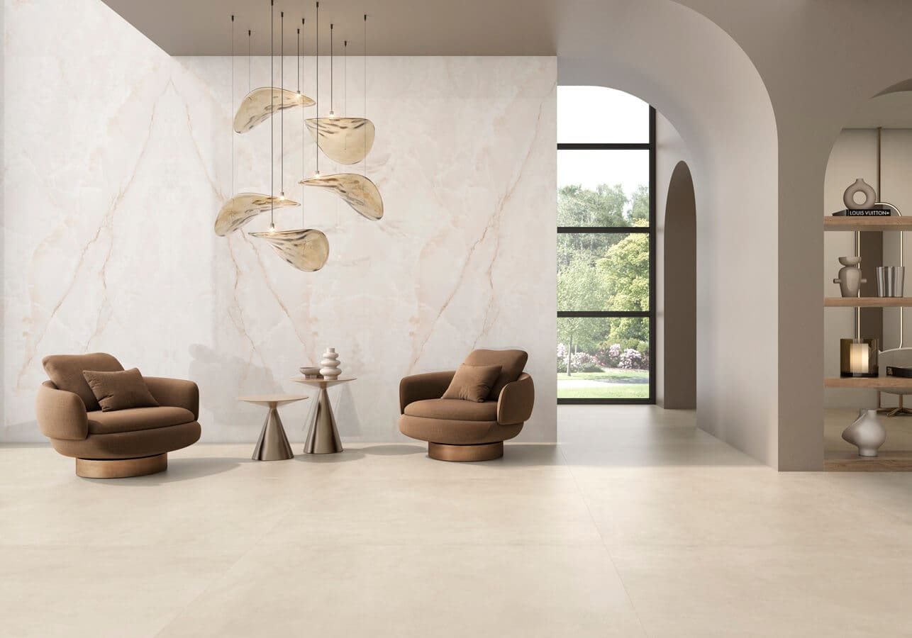 With delicate veining and brilliance, Onice Lux White is ideal for luxurious and sophisticated spaces. Its design features various points of light that enhance its color. Inspired by onyx stone, it boasts a bright background that fits seamlessly into any decor style, with soft golden veins adding a touch of distinction.