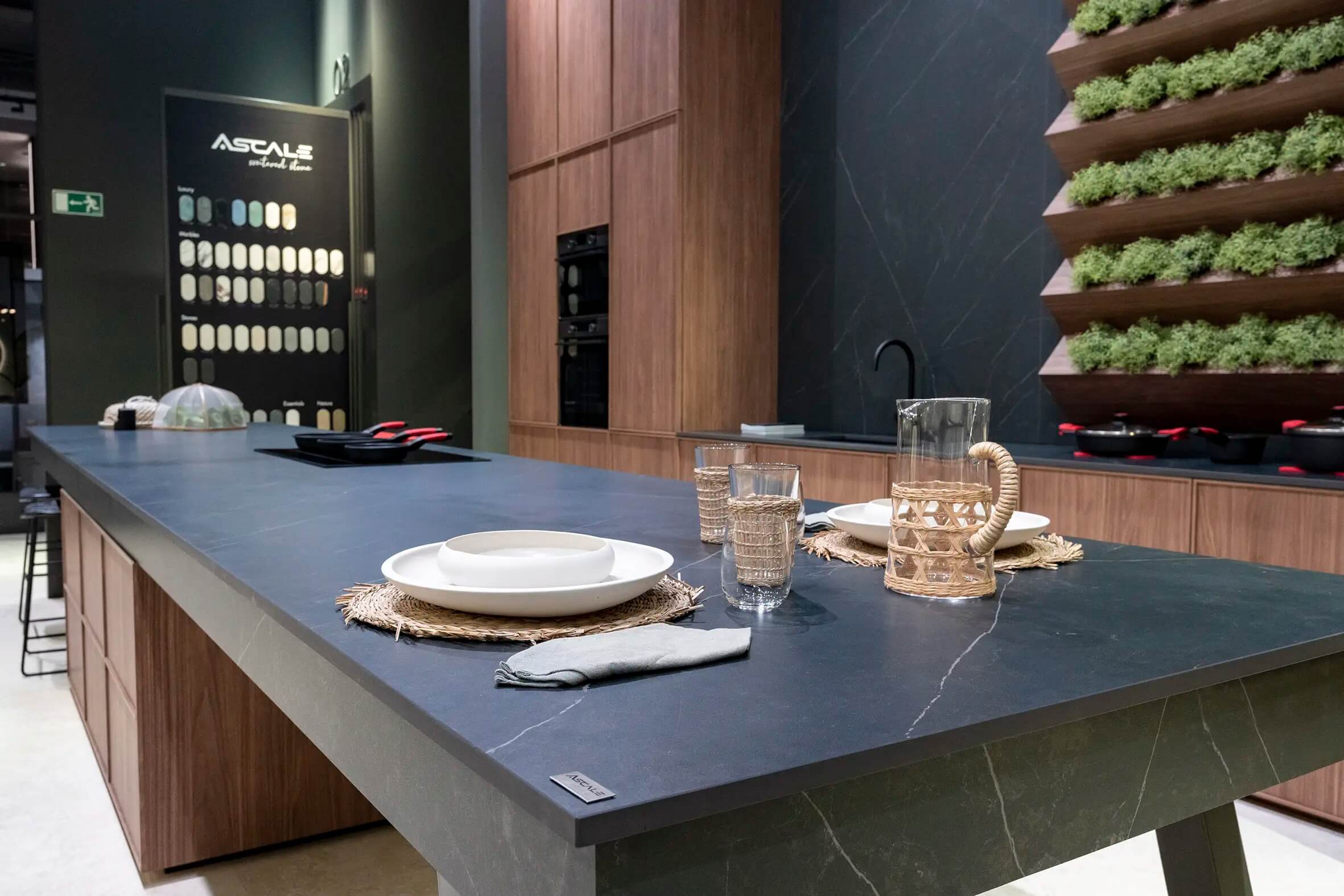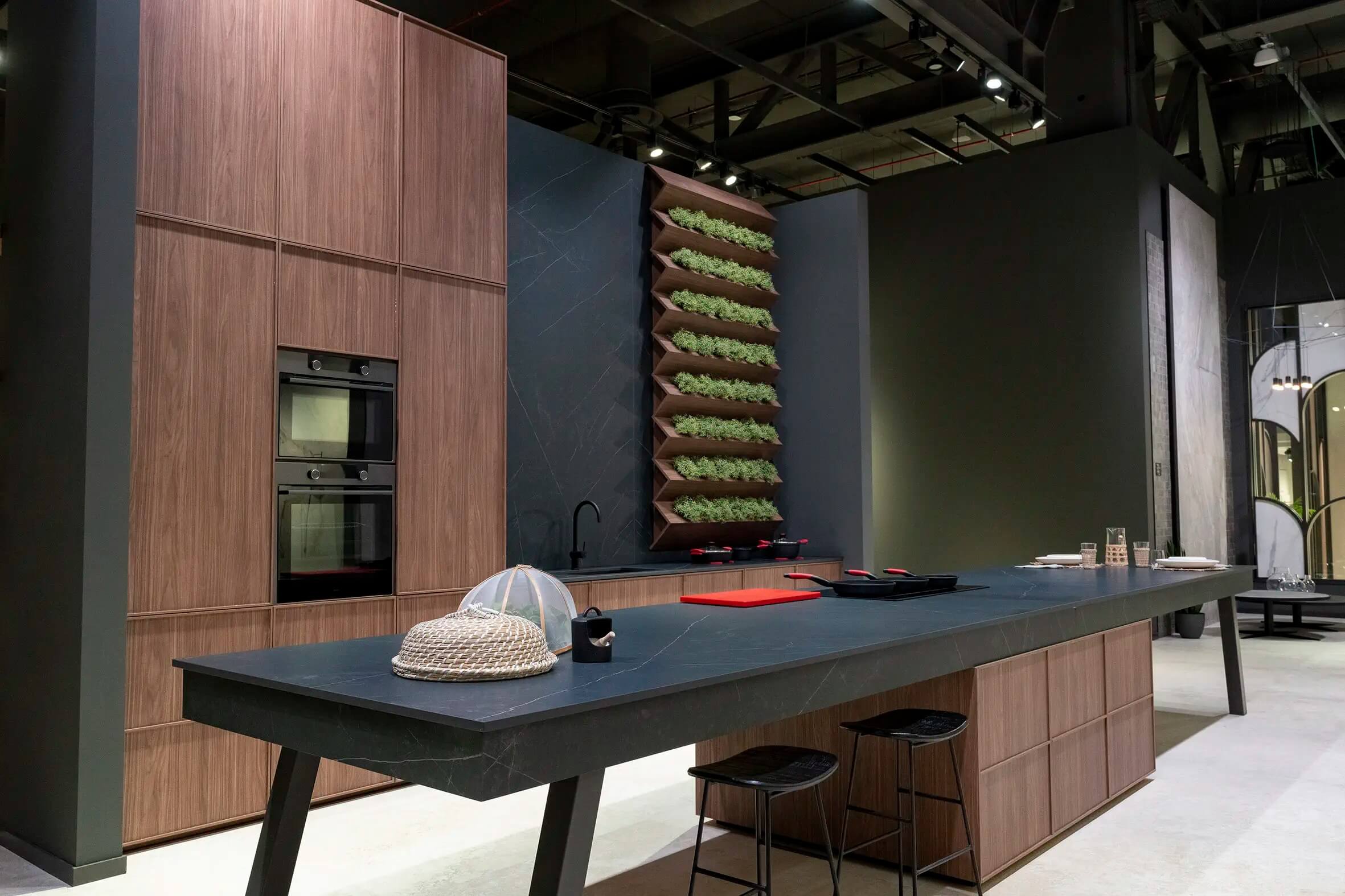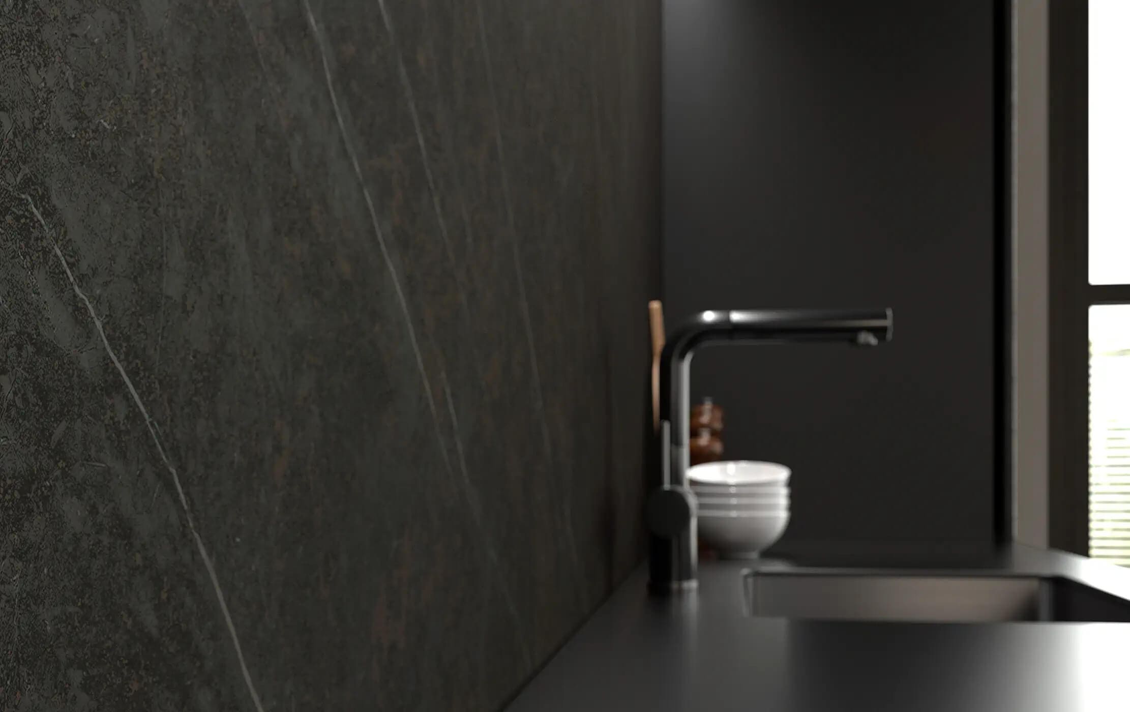 Allure Black draws inspiration from the furniture industry’s trend towards chocolate tones, blending elements of Crotone Pulpis and Belvedere stones. It features a brown base with fine, subtle veins accented by grey and oxide hues. This subdued pattern introduces a sense of tranquility to spaces. Its dynamic and elegant design makes it a favorite among architects and interior designers.