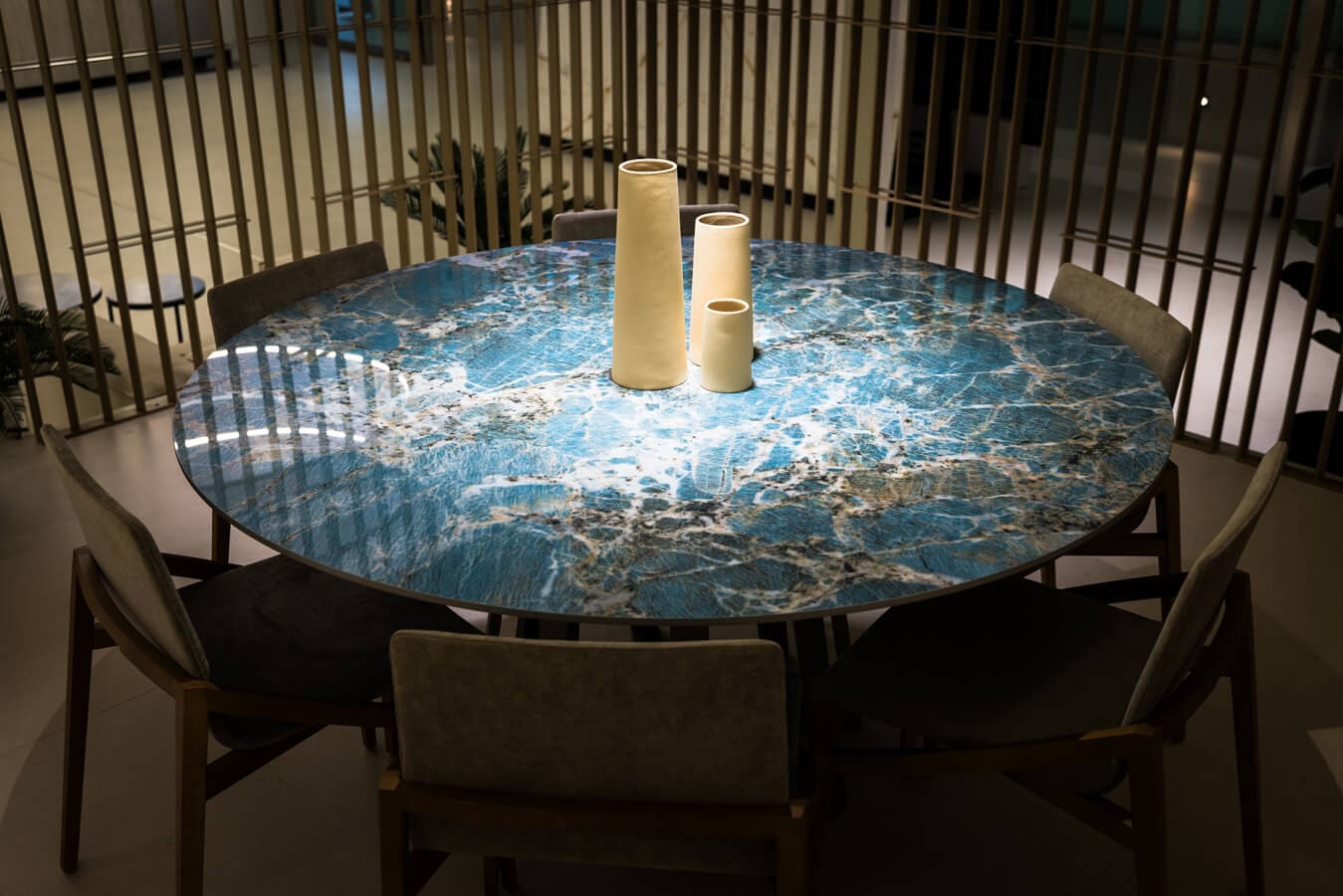 Inspirován drahokamem amazonit, Amazonite Seagreen se vyznačuje aqua zelenou barvou s hnědými skvrnami. Jeho nazelenalý odstín, doplněný modrými odlesky a hnědými skvrnami, z něj činí jedinečnou volbu. Pojmenován po řece Amazonce, tento plát ztělesňuje zelené a tyrkysové tóny okolní úrodné džungle. Jeho matný a jemně matný povrch přidává na výraznosti, což z něj činí ideální volbu pro přidání divokého nádechu do jakéhokoli stylu.