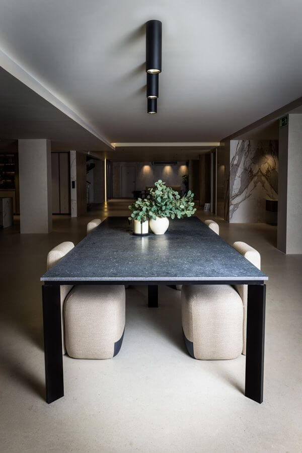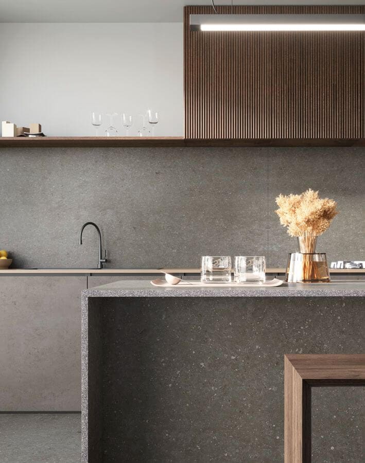 Ponořte se do hlubin noci s dekorem Pierre Bleue. Tento černý kámen, protkávaný minerálními fragmenty, vyzařuje nadčasovou eleganci modrého kamene, obohacující prostory svou neomezenou sofistikovaností.